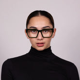 These large square glasses feature a thick, sculpted frame feeling both modern and timeless.
