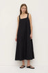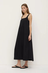 Elevated longline maxi dress crafted from a midweight cotton. Features a square scoop front and back neckline and side pockets for added utility.