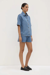 The Boxy Denim Short Sleeve Shirt is designed for classic everyday wear. Featuring a structured collar and button down front, it pairs effortlessly with our Boxy Denim Short.