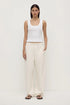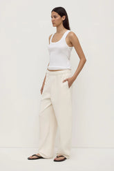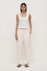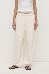 The Brushed Cotton Lounge Pant in shell is a 100% cotton pant with a slight barrel leg shape and internal drawcord.