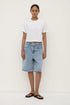 Cropped, boxy fit tee with a ribbed neckline, designed to fall at the waist.