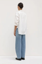 Longline cotton poplin shirt cut in a relaxed silhouette. Features a shaped hem, single button cuffs and double yoke pleat detail.