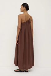 Asymmetrical one-shoulder maxi dress, crafted from a lightweight silk.