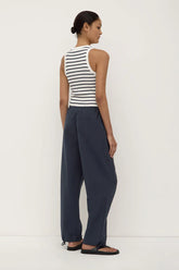 Softly structured pant made from a textured cotton. Designed for a relaxed look, it features an elasticated drawcord waistband, drawcord cuffs and slant side pockets.