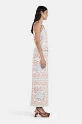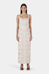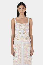The Ellie Linen Top features a structured scoop neck bodice with wide straps that curve into a flattering neckline. Vertical seaming and an underbust seam enhance the shape and provide a contoured fit. Finished with a clean invisible zipper at the centre back.