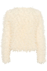 The Ulissa Cardigan is a chic, short-length piece with a relaxed, wide fit. Crafted in a soft Egret hue, it features stylish fringe detailing and a classic front button fastening. Perfect for pairing with jeans for a fresh, on-trend spring look.