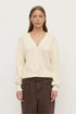 The Meri Knit Cardigan in cream is a 100% cotton cardigan with a V-neckline and button down front.