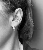This lovely organic ear cuff is individually sandcast in recycled, solid sterling silver. Designed to slide over the lobe and up onto the side of the ear. The diameter is 11mm and the width is approximately 4mm.