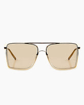 The Velda Oversized Squared Sunglasses from Otra feature a gleaming gold metal frame that instantly elevates any look. The oversized square silhouette exudes confidence, while the light brown Category 3 lenses deliver a warm, refined touch and essential 100% UV protection. Finished with a protective vegan pouch for stylish, eco-conscious storage.