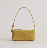 Named after the smallest member of the Yu Mei family, the Bobby Bag is a unique baguette style that works belt detailing through a semi-rectangular, slouchy shape. It features Yu Mei signature triangle panels, hand-tack detailing, and custom chrome hardware.